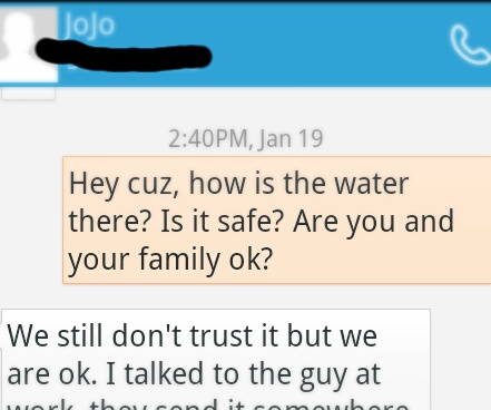 Here is a screenshot of a text message I received on Sunday from my cousin that lives there.